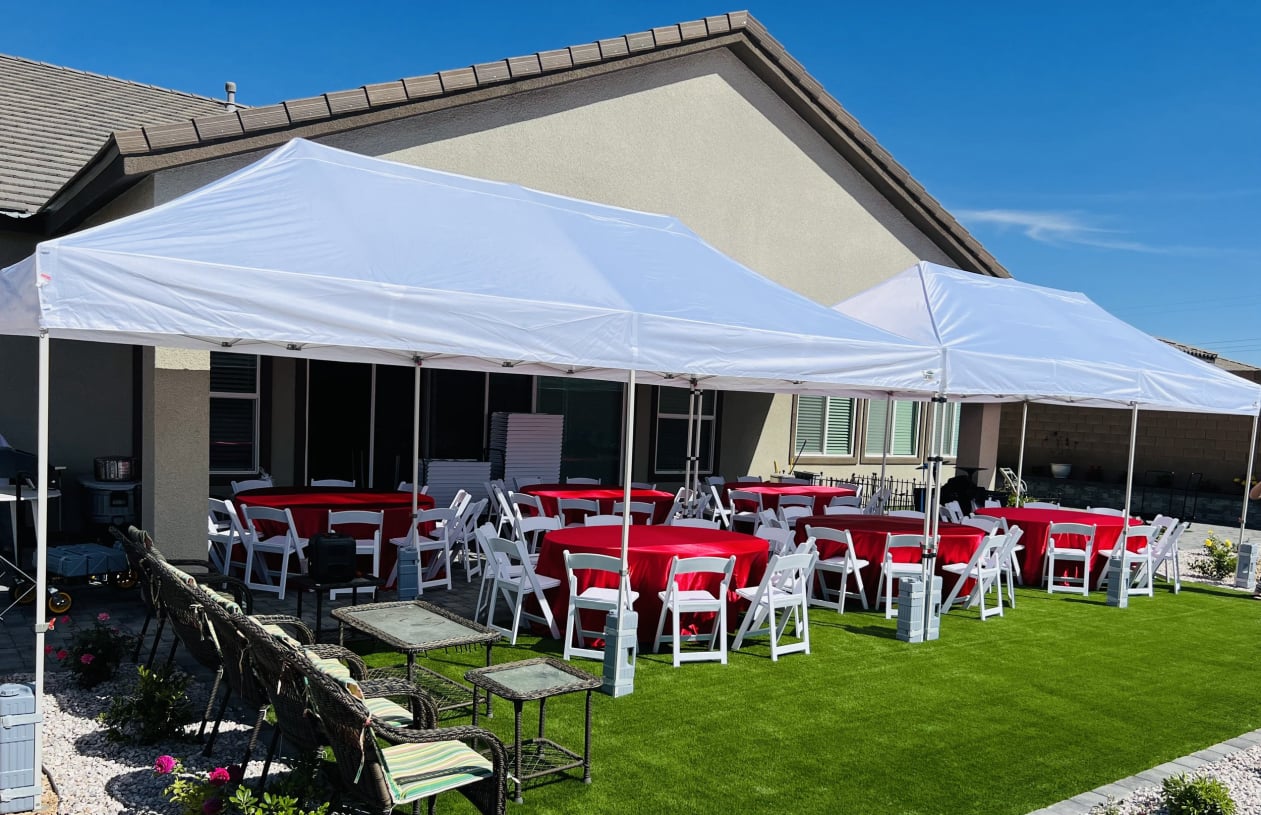 A+ Celebration offers weather-ready solutions, including tent sides, flooring, and heaters or fans. They also offer flexible setup schedules to adapt to forecasts.